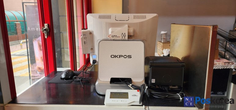 오케이포스기와 주방프린터기를 같이 설치해드렸어요.