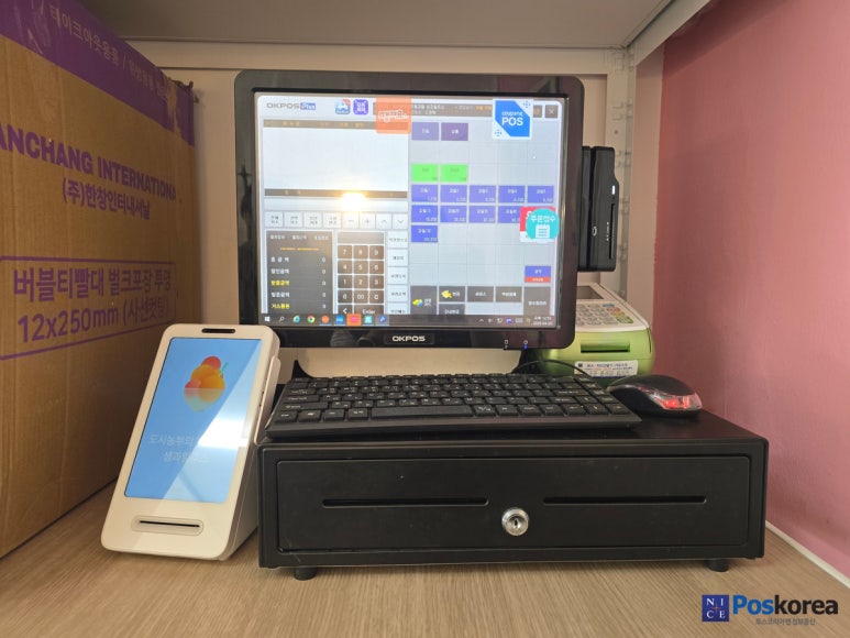 포스기와 유선단말기 K-1000과 토스프론트를 설치해드렸어요.